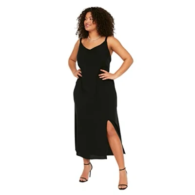 Trendyol FeMan Plus Size Midi A line Fitted Woven Dress Black