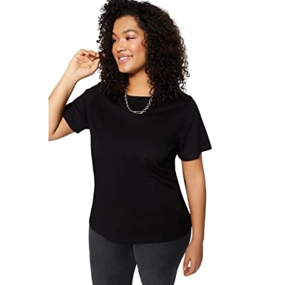 Trendyol FeMan Plus Size Regular fit Basic Crew Neck Knit T Shirt Black