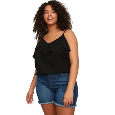 Material Composition: 100% Polyester Occasion: The Black Regular fit Plus Size Blouse is perfect for Casual occasions. Our Plus Size Collection offers all the must-haves and latest trends in sizes up to 6XL. Curves are cool – from casual office outfits to comfy sweats and glamorous evening looks for your date night. Design: This Basic Woven Plus Size Blouse for Female has Spaghetti Strap Scoop neck Plain pattern. It is Regular fit fit. If you are in between size,please size up. Wash at a maximum temperature of 30°C. Do not use bleach. Do not tumble dry. Iron at low temperature. Do not dry clean.