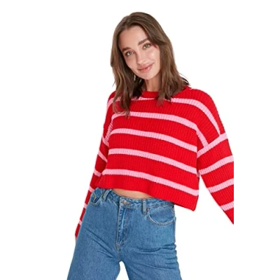 Material Composition: 100% Acrylic Occasion: The Orange Regular fit Sweater is perfect for Casual occasions. Our Collection offers affordable fashion for every occasion and style – from casual & relaxed to smart & elegant. Trendyol Collection translates the latest runway trends into wearable outfits for your wardrobe. Design: This Basic Knitwear Sweater for Female has Long sleeve Crew neck Striped pattern. It is Regular fit fit. If you are in between size,please size up. Hand wash at a maximum temperature of 30°C. Do not use bleach. Do not tumble dry. Iron at low temperature. Do not dry clean.