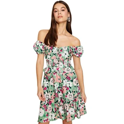 Material Composition: 100% Viscose Occasion: The Very colorful Regular fit Dress is perfect for Casual occasions. Our Collection offers affordable fashion for every occasion and style – from casual & relaxed to smart & elegant. Trendyol Collection translates the latest runway trends into wearable outfits for your wardrobe. Design: It is a Square collar Dress for Female. This Woven Dress has a Skater design with Floral pattern. If you are in between size,please size up. Wash at a maximum temperature of 30°C. Do not use bleach. Do not tumble dry. Iron at medium temperature. Do not dry clean.