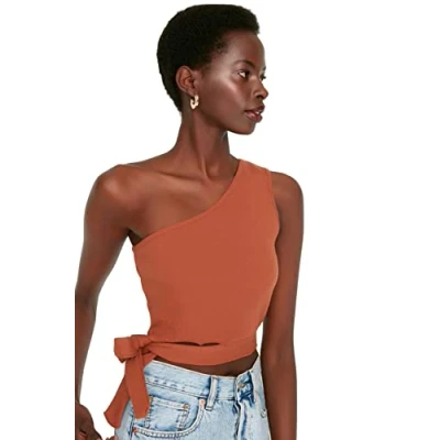Material Composition: 51% Polyester, 41% Cotton, 6% Viscose, 2% Elastane Occasion: The Cinnamon Slim fit Blouse is perfect for Casual/Casual occasions. Our Collection offers affordable fashion for every occasion and style – from casual & relaxed to smart & elegant. Trendyol Collection translates the latest runway trends into wearable outfits for your wardrobe. Design: This Basic Knit Blouse for Female has Sleeveless Asymmetrical Collar Plain pattern. It is Slim fit fit. If you are in between size,please size up. Wash at a maximum temperature of 30°C. Do not use bleach. Do not tumble dry. Iron at low temperature. Do not dry clean.