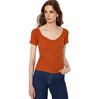 Material Composition: 95% Cotton,5% Elastane Occasion: The Cinnamon Slim fit Blouse is perfect for Casual/Casual occasions. Our Collection offers affordable fashion for every occasion and style – from casual & relaxed to smart & elegant. Trendyol Collection translates the latest runway trends into wearable outfits for your wardrobe. Design: This Bodycon Knit Blouse for Female has Short sleeve Sweetheart Plain pattern. It is Slim fit fit. If you are in between size,please size up. Wash at a maximum temperature of 30°C. Do not use bleach. Do not tumble dry. Iron at medium temperature. Do not dry clean.