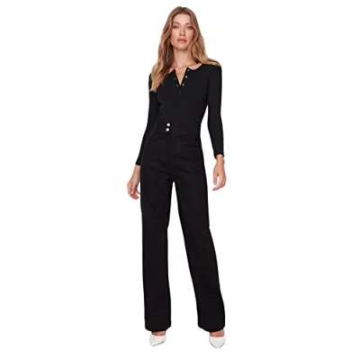 Material Composition: 100% Cotton Occasion: The Black 90's Wide Leg Jeans is perfect for Casual/Casual occasions. Our Collection offers affordable fashion for every occasion and style – from casual & relaxed to smart & elegant. Trendyol Collection translates the latest runway trends into wearable outfits for your wardrobe. Design: This Denim Jeans matches the latest trends. Trendyol designs casual everyday looks for everyone who like it cool and stylish. If you are in between size,please size up. Wash at a maximum temperature of 30°C. Do not use bleach. Do not tumble dry. Iron at low temperature. Do not dry clean.
