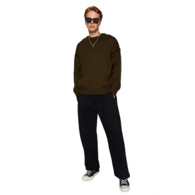 Trendyol Man Oversize Basic Crew Neck Knitwear Sweater,Khaki,M