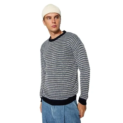 Material Composition: 100% Acrylic Occasion: The Navy Blue Regular fit Sweater is perfect for Casual occasions. Our Collection offers affordable fashion for every occasion and style – from casual & relaxed to smart & elegant. Trendyol Collection translates the latest runway trends into wearable outfits for your wardrobe. Design: This Basic Knitwear Sweater for Male has Long Sleeve Crew neck Striped pattern. It is Regular fit fit. Size Conversion: XXS(US 33-34), XS(US 35-36), S(US 37-38), M(US 39-40), L(US 41-42), XL(US 43-44), 2XL(US 45-46), 3XL(US 47-48) Hand wash at a maximum temperature of 30°C. Do not use bleach. Do not tumble dry. Iron at low temperature. Do not dry clean.
