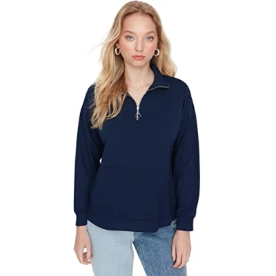 Material Composition: 79% Cotton, 21% Polyester Occasion: The Dark blue Regular fit Sweatshirts is perfect for Casual occasions. Our Basic Collection offers affordable fashion for every occasion and style – from casual & relaxed to smart & elegant. Trendyol Collection translates the latest runway trends into wearable outfits for your wardrobe. Design: This Knit Sweatshirts matches the latest trends. Trendyol designs casual everyday looks for everyone who like it cool and stylish. If you are in between size,please size up. Wash at a maximum temperature of 30°C. Do not use bleach. Do not tumble dry. Iron at low temperature. Do not dry clean.