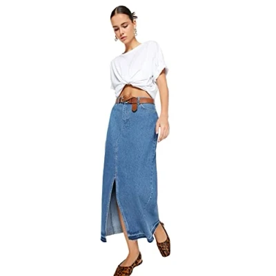 Trendyol Woman A line Denim Skirt,Dark Blue,40