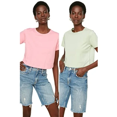 Material Composition: 100% Cotton Occasion: The Pink–Mint Regular fit T-Shirts is perfect for Casual occasions. Our Basic Collection offers affordable fashion for every occasion and style – from casual & relaxed to smart & elegant. Trendyol Collection translates the latest runway trends into wearable outfits for your wardrobe. Design: This Basic Knit T-Shirt for Woman has Short sleeve Crew neck Plain pattern. It is Regular fit fit. Size Conversion: XXS(EU 32 - US 0), XS(EU 34 - US 2), S(EU 36 - US 4), M(EU 38 - US 6), L(EU 40 - US 8), XL(EU 42 - US 10), 2XL(EU 44 - US 12), 3XL(EU 46 - US 14), 4XL(EU 48 - US 16), 5XL(EU 50 - US 18), 6XL(EU 52 - US 20) Wash at a maximum temperature of 30°C. Do not use bleach. Do not tumble dry. Iron at medium temperature. Do not dry clean.