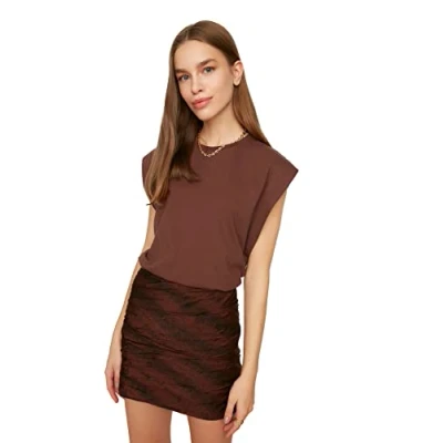 Material Composition: 100% Cotton Occasion: The Brown Regular fit T-Shirts is perfect for Casual occasions. Our Basics Collection offers affordable fashion for every occasion and style – from casual & relaxed to smart & elegant. Trendyol Collection translates the latest runway trends into wearable outfits for your wardrobe. Design: This Basic Knit T-Shirts for Girl has Sleeveless Crew neck Unifarben pattern. It is Regular fit fit. Size Conversion: XXS(EU 32 - US 0), XS(EU 34 - US 2), S(EU 36 - US 4), M(EU 38 - US 6), L(EU 40 - US 8), XL(EU 42 - US 10), 2XL(EU 44 - US 12), 3XL(EU 46 - US 14), 4XL(EU 48 - US 16), 5XL(EU 50 - US 18), 6XL(EU 52 - US 20) Wash at a maximum temperature of 30°C. Do not use bleach. Do not tumble dry. Iron at medium temperature. Do not dry clean.