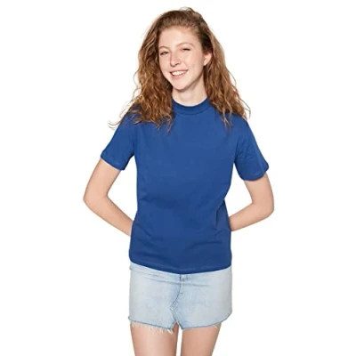 Material Composition: 69% Cotton,31% Polyester Occasion: The Navy Blue Regular fit T-Shirt is perfect for Casual occasions. Our Basic Collection offers affordable fashion for every occasion and style – from casual & relaxed to smart & elegant. Trendyol Collection translates the latest runway trends into wearable outfits for your wardrobe. Design: This Basic Knit T-Shirt for Woman has Short sleeve High neck Plain pattern. It is Regular fit fit. Size Conversion: XXS(EU 32 - US 0), XS(EU 34 - US 2), S(EU 36 - US 4), M(EU 38 - US 6), L(EU 40 - US 8), XL(EU 42 - US 10), 2XL(EU 44 - US 12), 3XL(EU 46 - US 14), 4XL(EU 48 - US 16), 5XL(EU 50 - US 18), 6XL(EU 52 - US 20) Wash at a maximum temperature of 30°C. Do not use bleach. Do not tumble dry. Iron at medium temperature. Do not dry clean.