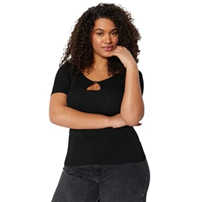 Material Composition: 100% Polyamide Occasion: The Black Fitted Plus Size Blouse is perfect for Casual occasions. Our Collection offers affordable fashion for every occasion and style – from casual & relaxed to smart & elegant. Trendyol Collection translates the latest runway trends into wearable outfits for your wardrobe. Design: This Bodycon Knitwear Plus Size Blouse for Woman has Short sleeve V Neck Plain pattern. It is Fitted fit. Size Conversion: XXS(EU 32 - US 0), XS(EU 34 - US 2), S(EU 36 - US 4), M(EU 38 - US 6), L(EU 40 - US 8), XL(EU 42 - US 10), 2XL(EU 44 - US 12), 3XL(EU 46 - US 14), 4XL(EU 48 - US 16), 5XL(EU 50 - US 18), 6XL(EU 52 - US 20) Hand wash at a maximum temperature of 30°C. Do not use bleach. Do not tumble dry. Iron at low temperature. Do not dry clean.
