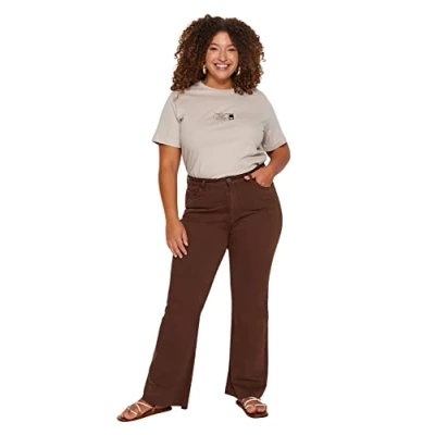 Trendyol Woman High Waist Skinny fit Plus Size Jeans,Brown,46
