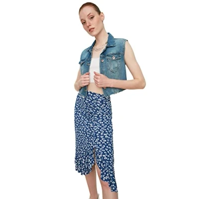 Trendyol Woman Midi A line Regular fit Woven Skirt Blau