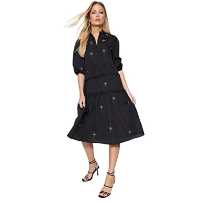 Material Composition: 75% Polyester, 25% Cotton Occasion: The black Regular fit Dress is perfect for Casual/Casual occasions. Our Collection offers affordable fashion for every occasion and style – from casual & relaxed to smart & elegant. Trendyol Collection translates the latest runway trends into wearable outfits for your wardrobe. Design: It is a Crew neck Midi Dress for Female. This Woven Dress has a Shift design with Graphic pattern. If you are in between size,please size up. Wash at a maximum temperature of 30°C. Do not use bleach. Do not tumble dry. Iron at low temperature. Do not dry clean.
