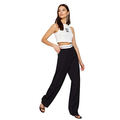 Material Composition: 87% Polyester, 13% Elastane Occasion: The Black Trousers is perfect for Casual occasions. Our Collection offers affordable fashion for every occasion and style – from casual & relaxed to smart & elegant. Trendyol Collection translates the latest runway trends into wearable outfits for your wardrobe. Design: This Normal Waist Woven Trousers for Woman has fit and Straight leg with a Plain pattern. Size Conversion: XXS(EU 32 - US 0), XS(EU 34 - US 2), S(EU 36 - US 4), M(EU 38 - US 6), L(EU 40 - US 8), XL(EU 42 - US 10), 2XL(EU 44 - US 12), 3XL(EU 46 - US 14), 4XL(EU 48 - US 16), 5XL(EU 50 - US 18), 6XL(EU 52 - US 20) Wash at a maximum temperature of 30°C. Do not use bleach. Do not tumble dry. Iron at low temperature. Do not dry clean.