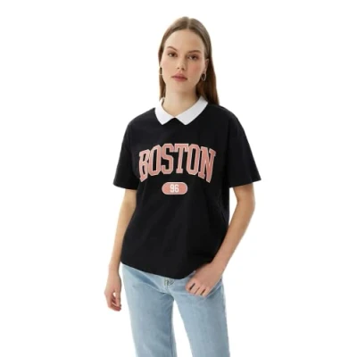 Material Composition: 100% Cotton Occasion: The black Semi-fit T-Shirt is perfect for Casual/Casual occasions. Our Collection offers affordable fashion for every occasion and style – from casual & relaxed to smart & elegant. Trendyol Collection translates the latest runway trends into wearable outfits for your wardrobe. Design: This Basic Knit T-Shirt for Woman has Short sleeve Polo neck With Slogan pattern. It is Regular fit fit. Size Conversion: XXS(EU 32 - US 0), XS(EU 34 - US 2), S(EU 36 - US 4), M(EU 38 - US 6), L(EU 40 - US 8), XL(EU 42 - US 10), 2XL(EU 44 - US 12), 3XL(EU 46 - US 14), 4XL(EU 48 - US 16), 5XL(EU 50 - US 18), 6XL(EU 52 - US 20) Please check the product label for detailed care instructions.