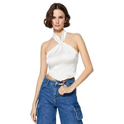 Trendyol Woman Slim fit Basic Halterneck Woven Blouse,Ecru,36
