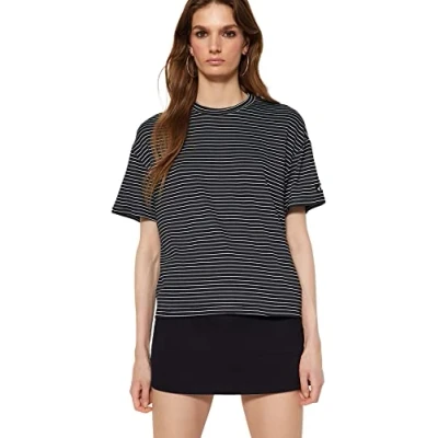 Material Composition: 84% Viscose,13% Polyester,3% Elastane Occasion: The black Relaxed fit T-Shirt is perfect for Casual/Casual occasions. Our Young Collection offers young, colorful, stylish and comfy pieces for every occasion and style with trendy designs and loving details. Trendyol Collection translates the latest runway trends into wearable outfits for your wardrobe. Design: This Basic Knit T-Shirt for Woman has Short sleeve Crew neck Striped pattern. It is Regular fit fit. Size Conversion: XXS(EU 32 - US 0), XS(EU 34 - US 2), S(EU 36 - US 4), M(EU 38 - US 6), L(EU 40 - US 8), XL(EU 42 - US 10), 2XL(EU 44 - US 12), 3XL(EU 46 - US 14), 4XL(EU 48 - US 16), 5XL(EU 50 - US 18), 6XL(EU 52 - US 20) Please check the product label for detailed care instructions.