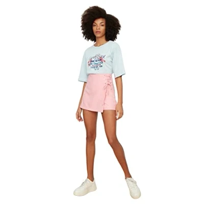 Material Composition: 96% Polyester,4% Elastane Occasion: The Pale Pink Skort Shorts & Bermudas is perfect for Casual occasions. Our Basic Collection offers affordable fashion for every occasion and style – from casual & relaxed to smart & elegant. Trendyol Collection translates the latest runway trends into wearable outfits for your wardrobe. Design: This High Waist Woven Shorts for Women has Skort fit and Straight leg with a Straight pattern. If you are in between size,please size up. Wash at a maximum temperature of 30°C. Do not use bleach. Do not tumble dry. Iron at low temperature. Do not dry clean.