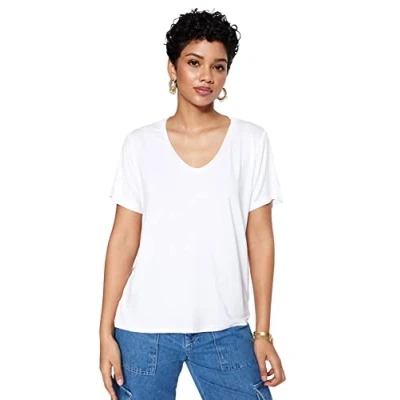 Material Composition: 56% Viscose, 42% Polyester, 2% Elastane Occasion: The White Regular fit T-Shirt is perfect for Casual occasions Our Basics Collection offers affordable fashion for every occasion and style – from casual & relaxed to smart & elegant Trendyol Collection translates the latest runway trends into wearable outfits for your wardrobe Design: This Basic Knit T-Shirt for Women has Short sleeve V Neck Plain pattern It is Regular fit fit If you are in between size,please size up Wash at a maximum temperature of 30°C Do not use bleach Do not tumble dry Iron at medium temperature Do not dry clean