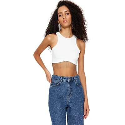Trendyol Women Fitted Basic Crew Neck Knit Blouse,Ecru,36