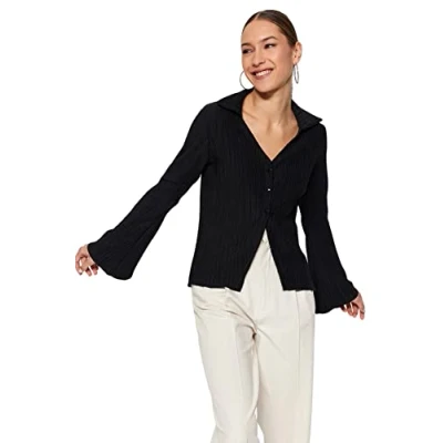 Material Composition: 100% Polyester Occasion: The Black Fitted Shirt is perfect for Casual occasions. Our Collection offers affordable fashion for every occasion and style – from casual & relaxed to smart & elegant. Trendyol Collection translates the latest runway trends into wearable outfits for your wardrobe. Design: This Basic Knit Shirt for Women has Long sleeve Shirt collar Plain pattern. It is Fitted fit. If you are in between size,please size up. Wash at a maximum temperature of 30°C. Do not use bleach. Do not tumble dry. Do not iron. Do not dry clean.