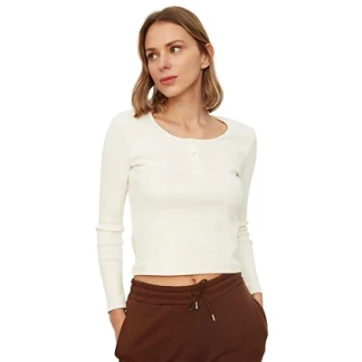 Material Composition: 55% Polyester, 43% Cotton, 2% Elastane Occasion: The Ecru Slim fit Blouses is perfect for Casual occasions. Our Collection offers affordable fashion for every occasion and style – from casual & relaxed to smart & elegant. Trendyol Collection translates the latest runway trends into wearable outfits for your wardrobe. Design: This Basic Knit Blouse for Women has Long sleeve Square collar Plain pattern. It is Fitted fit. If you are in between size,please size up. Wash at a maximum temperature of 30°C. Do not use bleach. Do not tumble dry. Iron at low temperature. Do not dry clean.