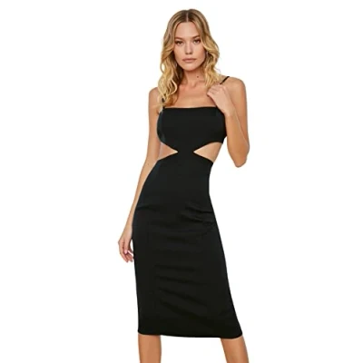 Material Composition: 97% Polyester, 3% Elastane Occasion: The Black Fitted Dress is perfect for Party occasions. Our Glam Collection offers affordable fashion for every occasion and style – from casual & relaxed to smart & elegant. Trendyol Collection translates the latest runway trends into wearable outfits for your wardrobe. Design: It is a Square collar Midi Dress for Women . This Woven Dress has a Bodycon design with Plain pattern. If you are in between size,please size up. Please check the product label for detailed care instructions.