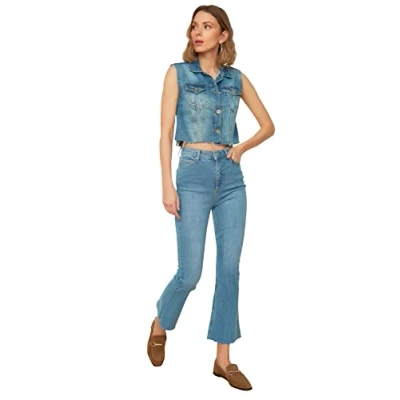 Trendyol Women High Waist Straight Leg Flare Jeans Blue