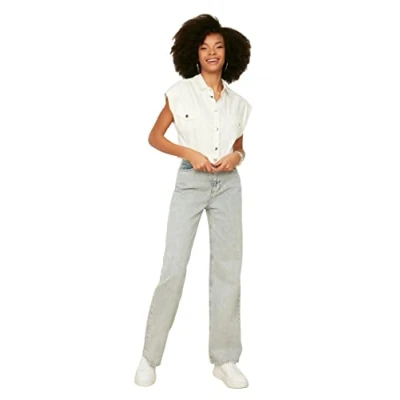 Material Composition: 100% Cotton Occasion: The Grau Wide Leg Jeans is perfect for Casual occasions. Our Collection offers affordable fashion for every occasion and style – from casual & relaxed to smart & elegant. Trendyol Collection translates the latest runway trends into wearable outfits for your wardrobe. Design: This High Waist Denim Jeans for Women has Wide Leg fit and Wide leg with a Plain pattern. If you are in between size,please size up. Wash at a maximum temperature of 30°C. Do not use bleach. Do not tumble dry. Iron at low temperature. Do not dry clean.