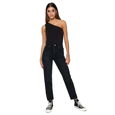 Material Composition: 100% Cotton Occasion: The Black Mom Jeans is perfect for Casual occasions. Our Collection offers affordable fashion for every occasion and style – from casual & relaxed to smart & elegant. Trendyol Collection translates the latest runway trends into wearable outfits for your wardrobe. Design: This High Waist Denim Jeans for Women has Mom fit and Wide leg with a Plain pattern. If you are in between size,please size up. Wash at a maximum temperature of 30°C. Do not use bleach. Do not tumble dry. Iron at low temperature. Do not dry clean.