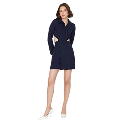 Material Composition: 88% Polyester, 12% Elastane Occasion: The Navy Blue Fitted Dress is perfect for Day / Night occasions. Our Collection offers affordable fashion for every occasion and style – from casual & relaxed to smart & elegant. Trendyol Collection translates the latest runway trends into wearable outfits for your wardrobe. Design: It is a Cache-coeur Mini Dress for Women . This Woven Dress has a A-line design with Plain pattern. If you are in between size,please size up. Wash at a maximum temperature of 30°C. Do not use bleach. Do not tumble dry. Iron at low temperature. Do not dry clean.