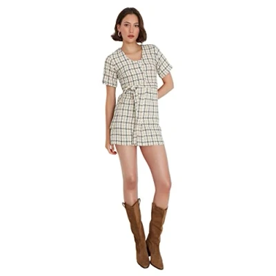 Material Composition: 50% Cotton, 35% Polyester, 11% Viscose, 4% Acrylic Occasion: The stone Regular fit Dress is perfect for Business occasions. Our Collection offers affordable fashion for every occasion and style – from casual & relaxed to smart & elegant. Trendyol Collection translates the latest runway trends into wearable outfits for your wardrobe. Design: This Woven Dress matches the latest trends. Trendyol designs casual everyday looks for everyone who like it cool and stylish. If you are in between size,please size up. Wash at a maximum temperature of 30°C. Do not use bleach. Do not tumble dry. Iron at low temperature. Do not dry clean.