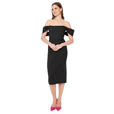 Material Composition: 88% Polyester, 12% Elastane Occasion: The Schwarz Fitted Dresses is perfect for Cocktail occasions. Our Collection offers affordable fashion for every occasion and style – from casual & relaxed to smart & elegant. Trendyol Collection translates the latest runway trends into wearable outfits for your wardrobe. Design: It is a Carmen Collar Midi Dress for Women . This Woven Dress has a bodycone design with Straight pattern. If you are in between size,please size up. Wash at a maximum temperature of 30°C. Do not use bleach. Do not tumble dry. Iron at low temperature. Do not dry clean.