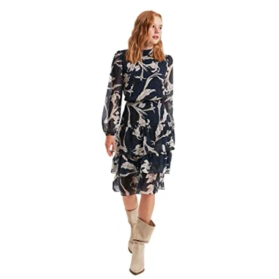 Material Composition: 100% Polyester Occasion: The Navy Blue Regular fit Dress is perfect for Business occasions. Our Collection offers affordable fashion for every occasion and style – from casual & relaxed to smart & elegant. Trendyol Collection translates the latest runway trends into wearable outfits for your wardrobe. Design: It is a Crew neck Midi Dress for Women . This Woven Dress has a Skater design with Floral pattern. If you are in between size,please size up. Wash at a maximum temperature of 30°C. Do not use bleach. Do not tumble dry. Iron at low temperature. Do not dry clean.