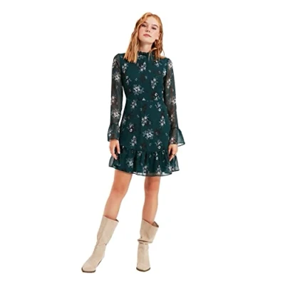 Material Composition: 100% Polyester Occasion: The Grün Regular fit Dresses is perfect for Day / Night occasions. Our Collection offers affordable fashion for every occasion and style – from casual & relaxed to smart & elegant. Trendyol Collection translates the latest runway trends into wearable outfits for your wardrobe. Design: It is a Standing collar Mini Dress for Women . This Woven Dress has a A-line design with Floral pattern. If you are in between size,please size up. Wash at a maximum temperature of 30°C. Do not use bleach. Do not tumble dry. Iron at low temperature. Do not dry clean.