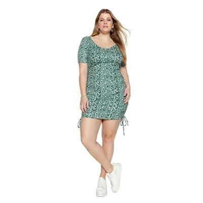 Trendyol Women Mini Bodycon Slim Knit Plus Size Dress,Green,4XL