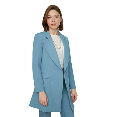 Trendyol Women Modest Regular Double Breasted Lapel Collar Woven Jackets & Vests Blue