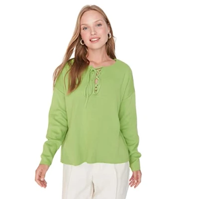 Material Composition: 100% Acrylic Occasion: The Green Oversize Sweater is perfect for Casual/Casual occasions. Our Collection offers affordable fashion for every occasion and style – from casual & relaxed to smart & elegant. Trendyol Collection translates the latest runway trends into wearable outfits for your wardrobe. Design: This Basic Knitwear Sweater for Women has Long Sleeve V Neck Straight pattern. It is Oversize fit. If you are in between size,please size up. Please check the product label for detailed care instructions.