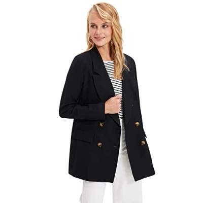 Trendyol Women Oversize Double Breasted Lapel Collar Woven Jacket Navy Blue