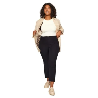 Trendyol Women Plus Size High Waist Straight Leg Cigarette Pants Trousers Schwarz