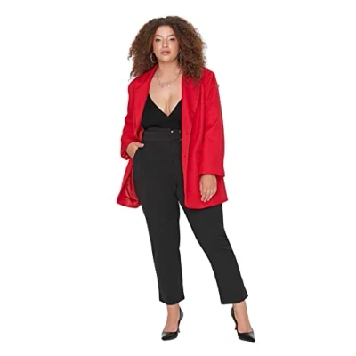 Trendyol Women Plus Size High Waist Straight Leg Regular fit Trousers Schwarz