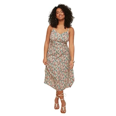 Trendyol Women Plus Size Midi Basic Fitted Woven Dress Beige