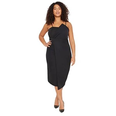 Trendyol Women Plus Size Midi Bodycone Fitted Woven Dress Black