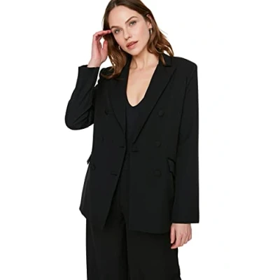 Trendyol Women Plus Size Regular fit Double Breasted Crew Neck Woven Blazer Black