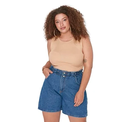 Trendyol Women Plus Size Slim Bodycon Crew Neck Knitwear Blouse Camel