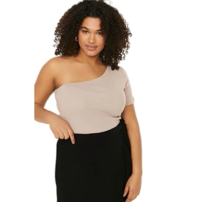 Trendyol Women Plus Size Slim fit Asymmetric Strapless Knit Blouse Stone