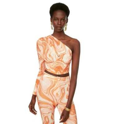 Trendyol Women Regular Bodycon Asymmetrical Collar Woven Blouse Orange