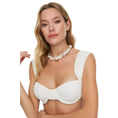 Material Composition: 95% Polyamide, 5% Elastane Occasion: The Ecru Regular fit Bikini Top is perfect for Beachwear occasions. Our Collection offers affordable fashion for every occasion and style – from casual & relaxed to smart & elegant. Trendyol Collection translates the latest runway trends into wearable outfits for your wardrobe. Design: This balconette woven bikini top for women has maximizer cup and plain pattern. It is Single pack If you are in between size,please size up. Hand wash at a maximum temperature of 30°C. Do not use bleach. Do not tumble dry. Do not iron. Do not dry clean.